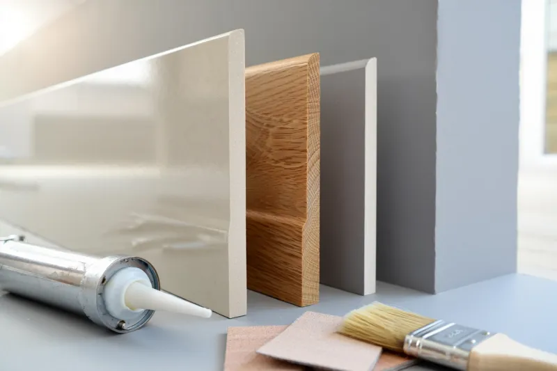 МДФ-плинтусы часто имитируют натуральное дерево, но более чувствительны к влаге. Для них особенно важна тщательная заделка щелей и защита торцов от влаги.