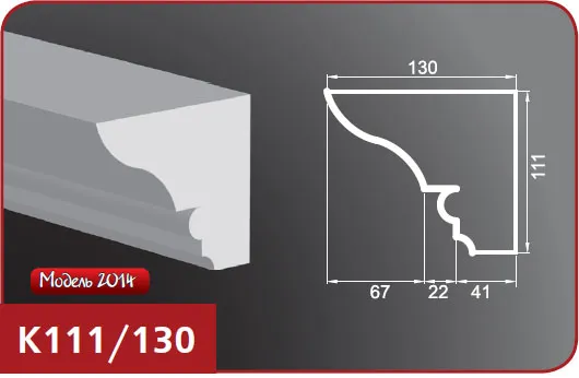 Карниз для фасада модели К111/130 изготовлен из пенопласта (пенополистирол), верхний слой которого представляет собой эластичное покрытие на основе акриловых полимеров, а армирующее покрытие выполнено из кварцевого песка. Это изделие предназначено для покраски и идеально подходит для отделки наружных поверхностей. Особенности изделий из пенопласта включают в себя высокую прочность, влагостойкость, легкий вес и возможность монтажа на утепленных стенах. Пенопластовые карнизы легко обрабатывать и хорошо переносят различные температурные воздействия, что делает их долговечными и очень надежными. Также возможно изготовление карнизов по индивидуальным размерам.