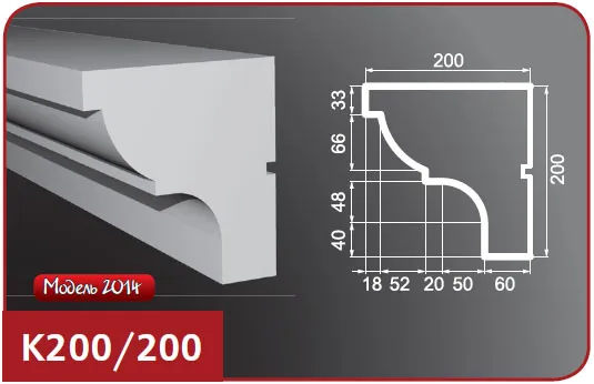 Карниз для фасада модели К200/200 изготовлен из пенопласта (пенополистирол), верхний слой которого представляет собой эластичное покрытие на основе акриловых полимеров, а армирующее покрытие выполнено из кварцевого песка. Это изделие предназначено для покраски и идеально подходит для отделки наружных поверхностей. Особенности изделий из пенопласта включают в себя высокую прочность, влагостойкость, легкий вес и возможность монтажа на утепленных стенах. Пенопластовые карнизы легко обрабатывать и хорошо переносят различные температурные воздействия, что делает их долговечными и очень надежными. Также возможно изготовление карнизов по индивидуальным размерам.