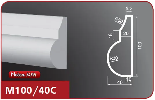 Фасадный молдинг М100/40-C изготовлен из пенопласта (пенополистирол), верхний слой которого представляет собой эластичное покрытие на основе акриловых полимеров, а армирующее покрытие выполнено из кварцевого песка. Это изделие предназначено для покраски и идеально подходит для отделки наружных поверхностей. Особенности изделий из пенопласта включают в себя высокую прочность, влагостойкость, легкий вес и возможность монтажа на обычную штукатурку, на утепленные (в том числе вентилируемые) фасады. Пенопластовые молдинги легко обрабатывать и хорошо переносят различные температурные воздействия, что делает их долговечными и очень надежными.