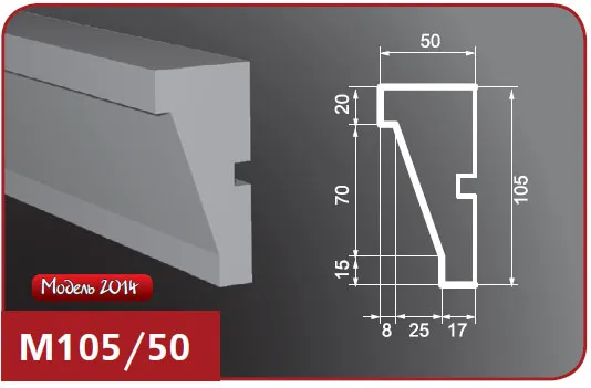 Фасадный молдинг М105/50 изготовлен из пенопласта (пенополистирол), верхний слой которого представляет собой эластичное покрытие на основе акриловых полимеров, а армирующее покрытие выполнено из кварцевого песка. Это изделие предназначено для покраски и идеально подходит для отделки наружных поверхностей. Особенности изделий из пенопласта включают в себя высокую прочность, влагостойкость, легкий вес и возможность монтажа на обычную штукатурку, на утепленные (в том числе вентилируемые) фасады. Пенопластовые молдинги легко обрабатывать и хорошо переносят различные температурные воздействия, что делает их долговечными и очень надежными.
