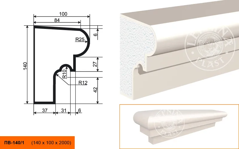 Подоконник ПВ-140/1 производителя LEPNINAPLAST изготовленный из полистирола высокой плотности, который покрыт эластичной шпатлевкой PS Technoplaster, покрытие абсолютно устойчиво к атмосферным и механическим повреждениям. Оконные проемы часто становятся точкой проникновения шума с улицы. Правильный выбор внешних подоконников позволяет не только украсить здание, но и обеспечить в нем тишину. Подоконный элемент обладает рядом преимуществ, таких как легкий вес, прочность, устойчивость к влаге. Установка подоконника производится в соответствии с инструкциями производителя, что обеспечивает правильное и надежное крепление. Перед покраской не требуется обязательная покрытие грунтовкой, для склеивания изделий между собой рекомендуется использовать клея: CERESIT CT 84, PENOSIL FIXGo, TYTAN STYRO 753.