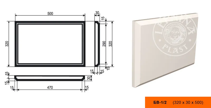 Боссаж БВ-1/2 производителя LEPNINAPLAST изготовленный из полистирола высокой плотности, который покрыт эластичной шпатлевкой PS Technoplaster, покрытие абсолютно устойчиво к атмосферным и механическим повреждениям. Руст является декоративным элементом, используемым для торцевого угла фасада. Он обладает рядом преимуществ, таких как легкий вес, прочность, устойчивость к влаге. Их установка также относительно проста. Русты могут использоваться как в новом строительстве, так и при реставрации старых зданий для придания им нового внешнего вида. Перед покраской не требуется обязательная покрытие грунтовкой, для склеивания изделий между собой рекомендуется использовать клея: CERESIT CT 84, PENOSIL FIXGo, TYTAN STYRO 753.