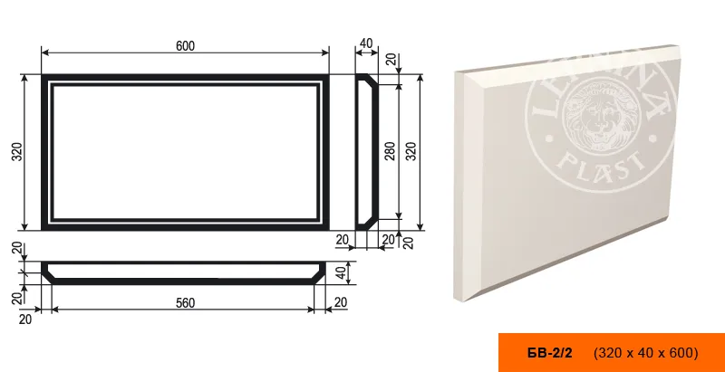 Боссаж БВ-2/2 производителя LEPNINAPLAST изготовленный из полистирола высокой плотности, который покрыт эластичной шпатлевкой PS Technoplaster, покрытие абсолютно устойчиво к атмосферным и механическим повреждениям. Руст является декоративным элементом, используемым для торцевого угла фасада. Он обладает рядом преимуществ, таких как легкий вес, прочность, устойчивость к влаге. Их установка также относительно проста. Русты могут использоваться как в новом строительстве, так и при реставрации старых зданий для придания им нового внешнего вида. Перед покраской не требуется обязательная покрытие грунтовкой, для склеивания изделий между собой рекомендуется использовать клея: CERESIT CT 84, PENOSIL FIXGo, TYTAN STYRO 753.