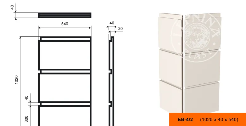Боссаж БВ-4/2 производителя LEPNINAPLAST изготовленный из полистирола высокой плотности, который покрыт эластичной шпатлевкой PS Technoplaster, покрытие абсолютно устойчиво к атмосферным и механическим повреждениям. Руст является декоративным элементом, используемым для торцевого угла фасада. Он обладает рядом преимуществ, таких как легкий вес, прочность, устойчивость к влаге. Их установка также относительно проста. Русты могут использоваться как в новом строительстве, так и при реставрации старых зданий для придания им нового внешнего вида. Перед покраской не требуется обязательная покрытие грунтовкой, для склеивания изделий между собой рекомендуется использовать клея: CERESIT CT 84, PENOSIL FIXGo, TYTAN STYRO 753.