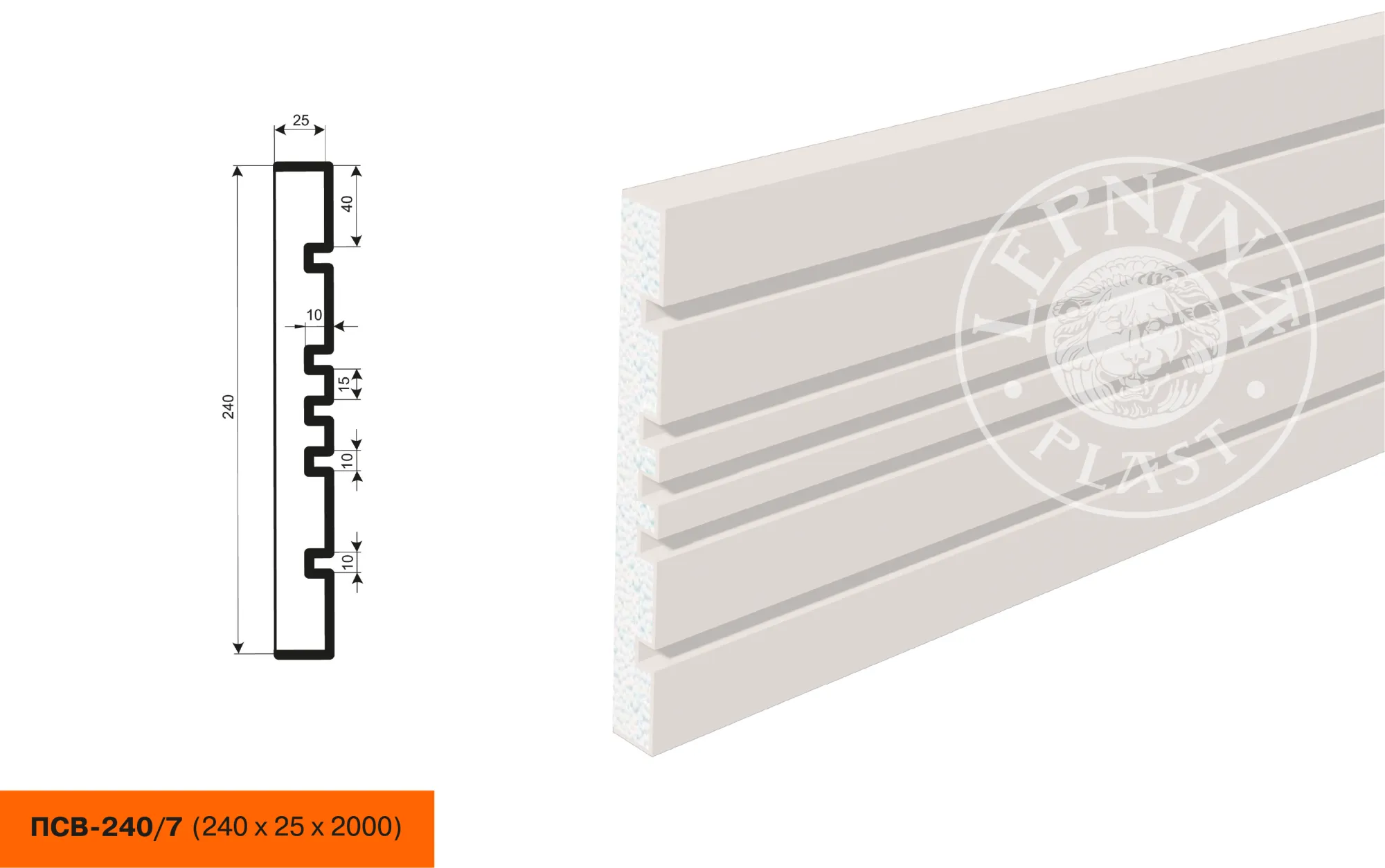 Фасадная панель ПСВ-240/7 изготовлена из высококачественного полистирола с высокой плотностью и покрыты эластичной шпатлевкой PS Technoplaster. Это покрытие обладает отличной стойкостью к атмосферным воздействиям и механическим повреждениям.