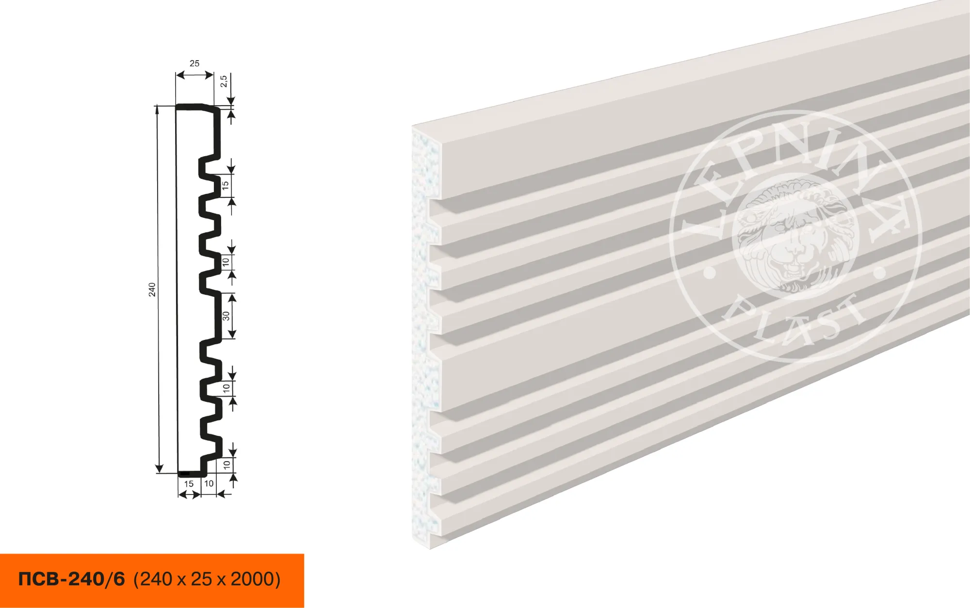 Фасадная панель ПСВ-240/6 изготовлена из высококачественного полистирола с высокой плотностью и покрыты эластичной шпатлевкой PS Technoplaster. Это покрытие обладает отличной стойкостью к атмосферным воздействиям и механическим повреждениям.