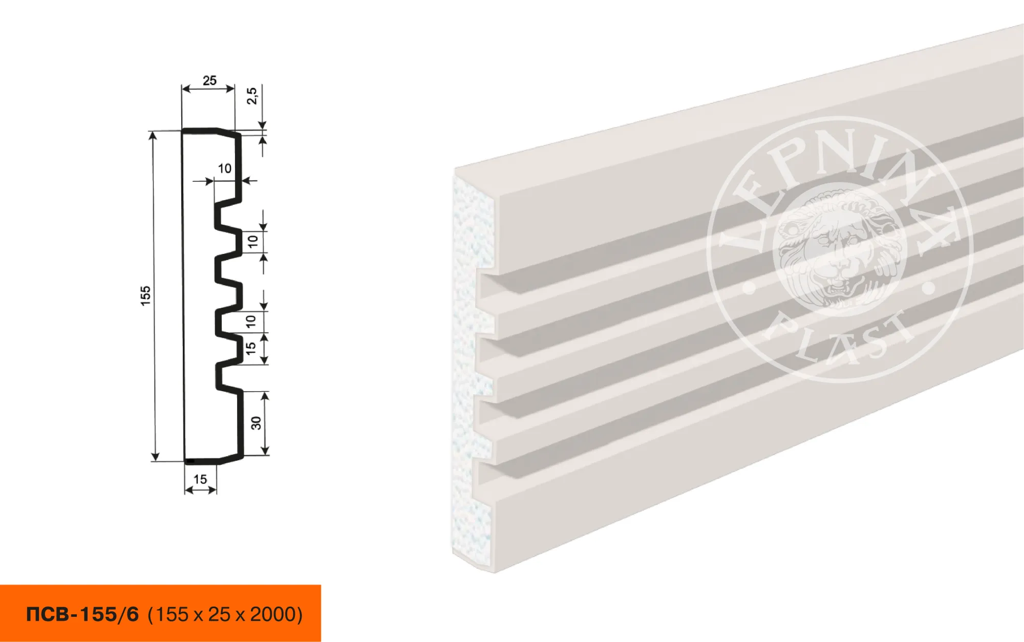 Фасадная панель ПСВ-155/6 изготовлена из высококачественного полистирола с высокой плотностью и покрыты эластичной шпатлевкой PS Technoplaster. Это покрытие обладает отличной стойкостью к атмосферным воздействиям и механическим повреждениям.