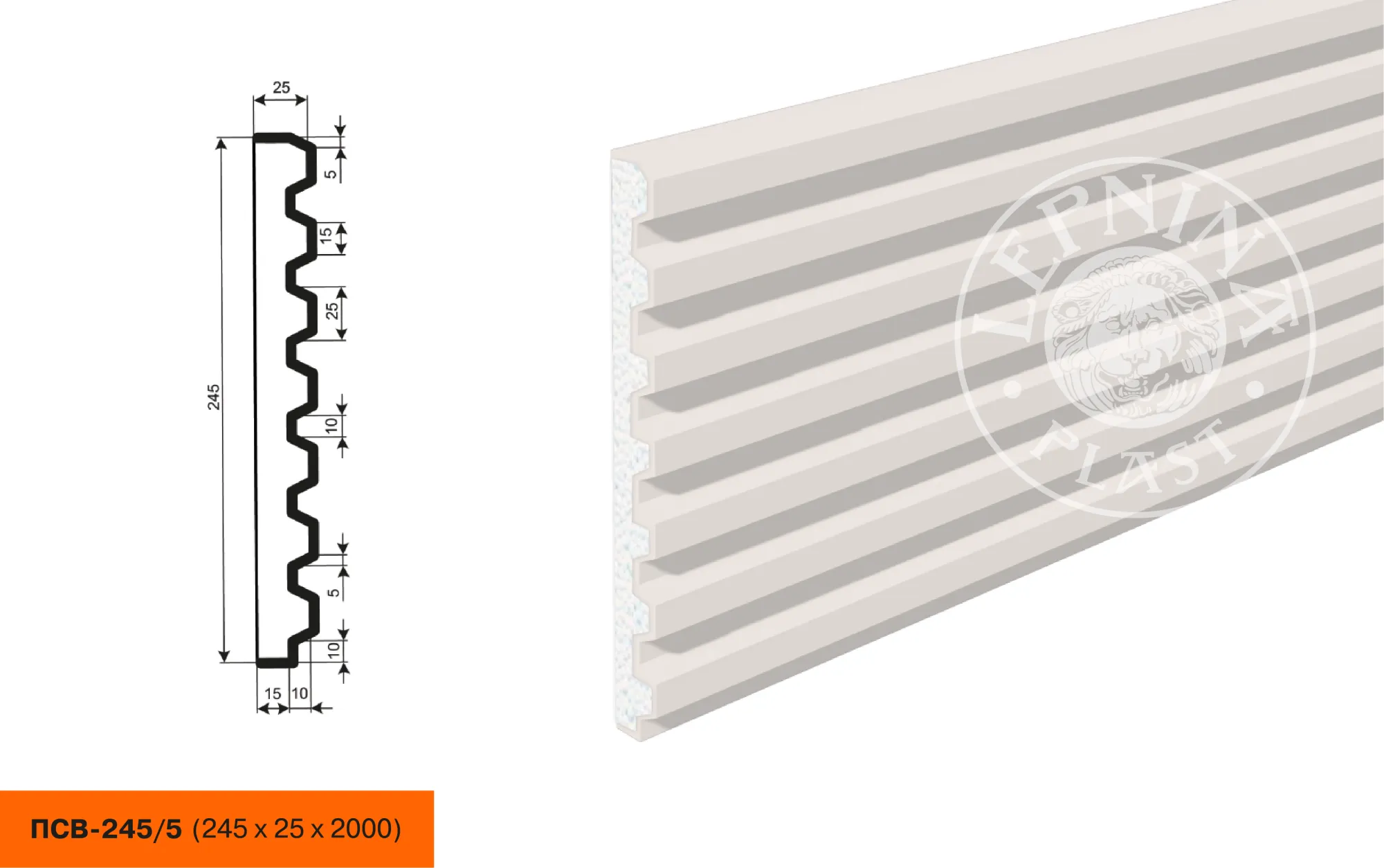 Фасадная панель ПСВ-245/5 изготовлена из высококачественного полистирола с высокой плотностью и покрыты эластичной шпатлевкой PS Technoplaster. Это покрытие обладает отличной стойкостью к атмосферным воздействиям и механическим повреждениям.