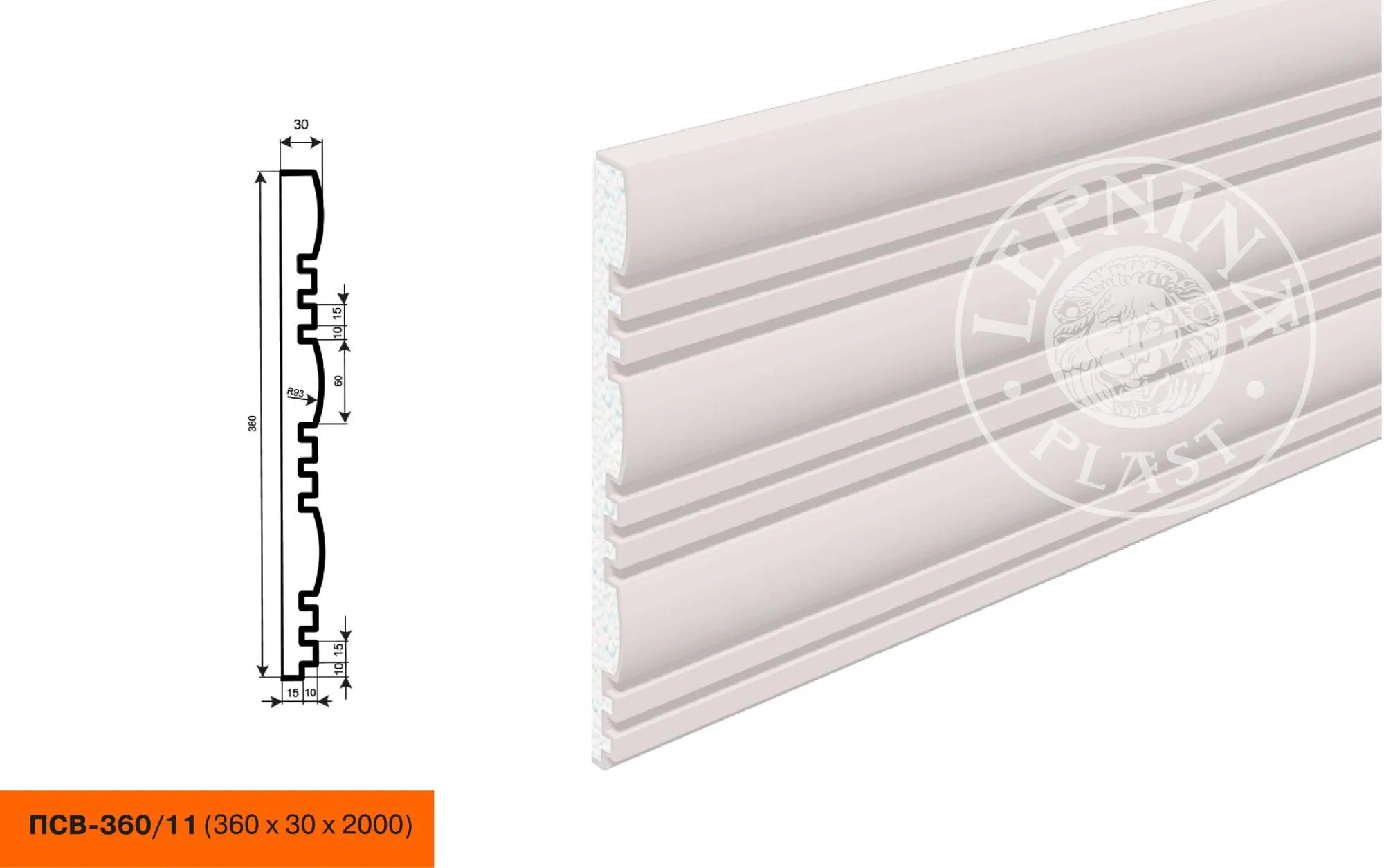 Фасадная панель ПСВ-360/11 изготовлена из высококачественного полистирола с высокой плотностью и покрыты эластичной шпатлевкой PS Technoplaster. Это покрытие обладает отличной стойкостью к атмосферным воздействиям и механическим повреждениям.