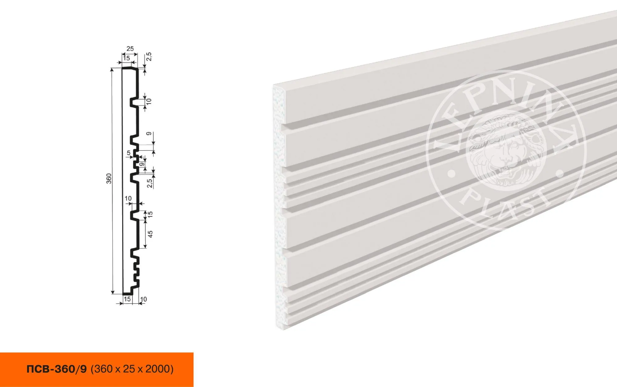 Фасадная панель ПСВ-360/9 изготовлена из высококачественного полистирола с высокой плотностью и покрыты эластичной шпатлевкой PS Technoplaster. Это покрытие обладает отличной стойкостью к атмосферным воздействиям и механическим повреждениям.