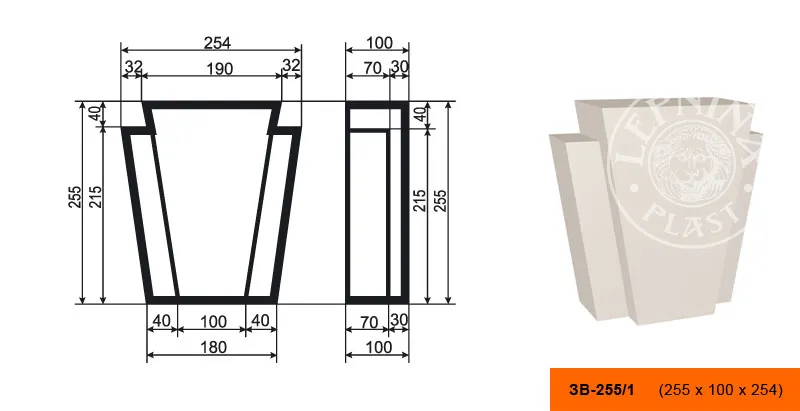 Фасадный замковой камень ЗВ-255/1 производителя LEPNINAPLAST изготовленный из полистирола высокой плотности, который покрыт эластичной шпатлевкой PS Technoplaster, покрытие абсолютно устойчиво к атмосферным и механическим повреждениям. Декоративный замок используют как вставку между наличниками для обрамления окон. Изделия обладает рядом преимуществ, таких как легкий вес, прочность, устойчивость к влаге. Установка замка производится в соответствии с инструкциями производителя, что обеспечивает правильное и надежное крепление. Перед покраской не требуется обязательная покрытие грунтовкой, для склеивания изделий между собой рекомендуется использовать клея: CERESIT CT 84, PENOSIL FIXGo, TYTAN STYRO 753.