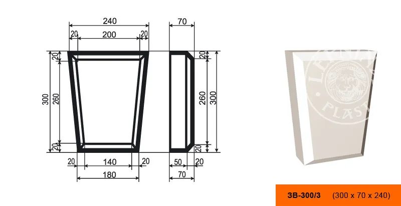 Фасадный замковой камень ЗВ-300/3 производителя LEPNINAPLAST изготовленный из полистирола высокой плотности, который покрыт эластичной шпатлевкой PS Technoplaster, покрытие абсолютно устойчиво к атмосферным и механическим повреждениям. Декоративный замок используют как вставку между наличниками для обрамления окон. Изделия обладает рядом преимуществ, таких как легкий вес, прочность, устойчивость к влаге. Установка замка производится в соответствии с инструкциями производителя, что обеспечивает правильное и надежное крепление. Перед покраской не требуется обязательная покрытие грунтовкой, для склеивания изделий между собой рекомендуется использовать клея: CERESIT CT 84, PENOSIL FIXGo, TYTAN STYRO 753.