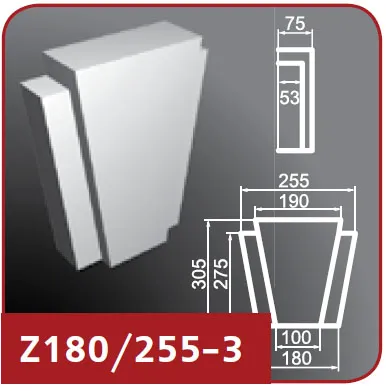 Фасадный замковой камень Z180/255-3 изготовлен из пенопласта (пенополистирол), верхний слой которого представляет собой эластичное покрытие на основе акриловых полимеров, а армирующее покрытие выполнено из кварцевого песка. Декоративный замок используют как вставку между наличниками для обрамления окон. Изделия обладает рядом преимуществ, таких как легкий вес, прочность, устойчивость к влаге. Установка замка производится в соответствии с инструкциями производителя.