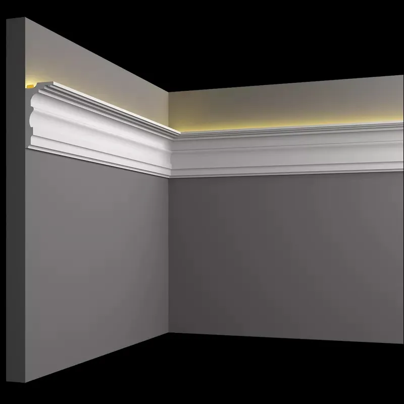 Карнизы из гипса для скрытого освещения - идеальное решение! Они отлично подходят для всех видов потолочных покрытий, включая натяжные потолки, и могут также использоваться в качестве карнизов для штор.