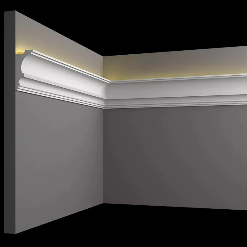 Карнизы из гипса для скрытого освещения - идеальное решение! Они отлично подходят для всех видов потолочных покрытий, включая натяжные потолки, и могут также использоваться в качестве карнизов для штор.