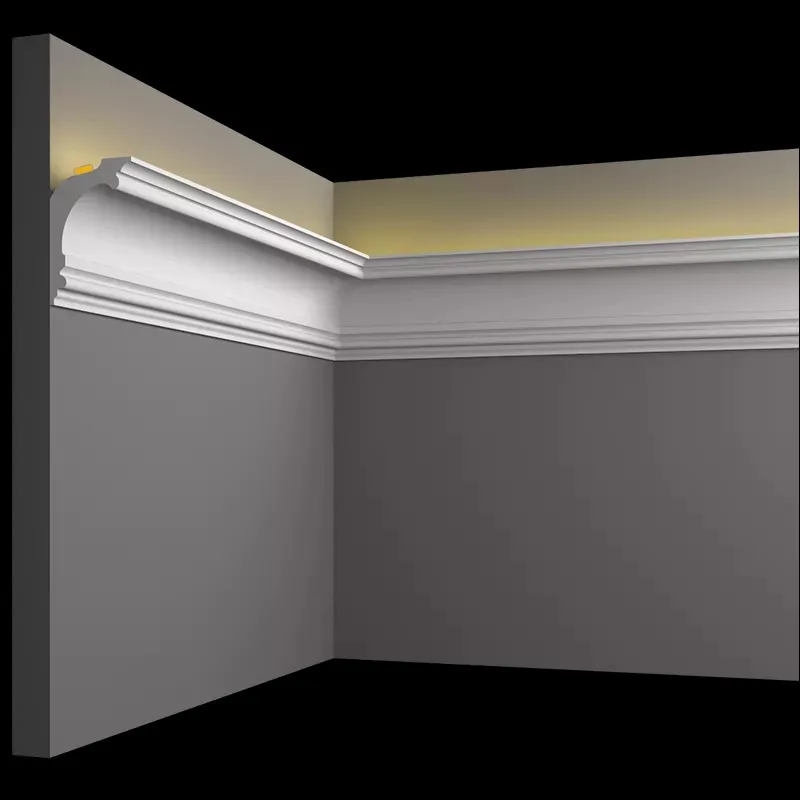 Карнизы из гипса для скрытого освещения - идеальное решение! Они отлично подходят для всех видов потолочных покрытий, включая натяжные потолки, и могут также использоваться в качестве карнизов для штор.