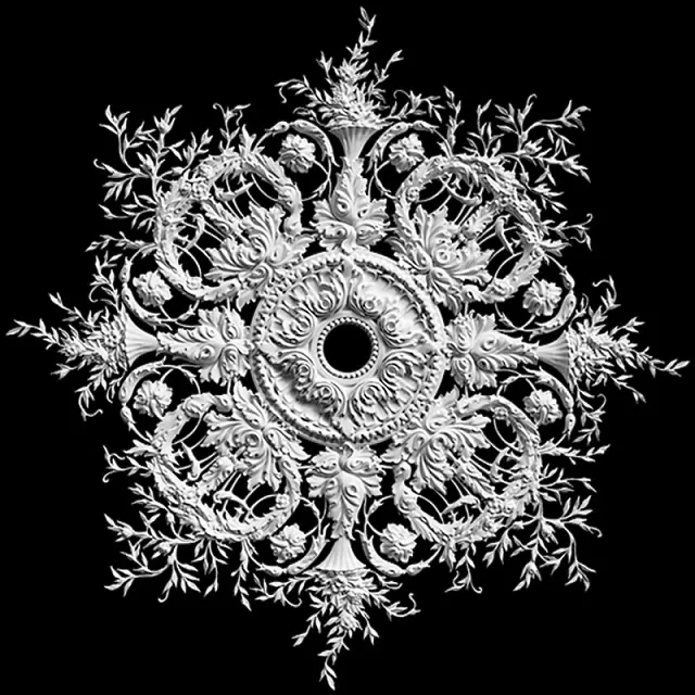 ** Большие орнаментальные розетки, размером более 1000мм, для удобства монтажа состоят из нескольких частей и называются наборными.