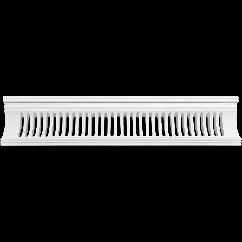 Вентиляционные карнизы из гипса используются для закрытия отверстий вентиляции на стенах и потолке. Они могут иметь форму прямоугольных сетчатых конструкций с различным узором, включая барельефы и флористический декор, а также фризы для вентиляции. В ассортименте представлены модели высотой от 150 до 220 мм с универсальным дизайном, включая вертикальные полосы или изысканный ленточный растительный узор, а также вентиляционные карнизы. Эти изделия можно сочетать с гладкими или орнаментальными карнизами (выбор моделей указан в описании товара), что позволяет создать единый стильный дизайн без видимых швов и нарушения целостности интерьера. Продукция изготавливается на заводе с использованием передовых немецких технологий, обеспечивающих идеальную геометрию и высокое качество деталей. . Гипс, использованный в производстве, экологически чист и пожаробезопасен. Потолочные карнизы из гипса отличаются долговечностью и легкостью в реставрации при необходимости.