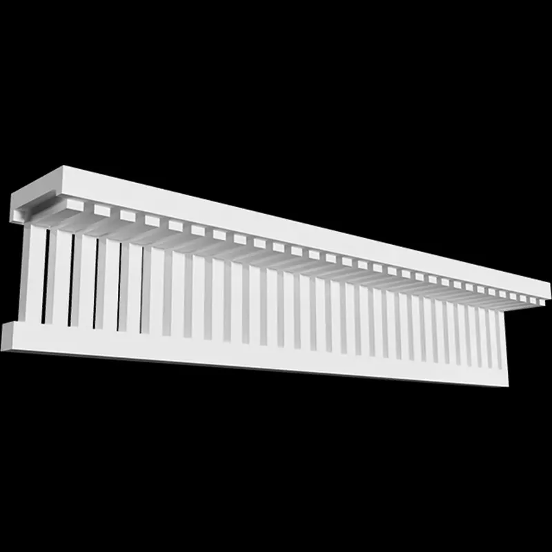 Вентиляционные карнизы из гипса используются для закрытия отверстий вентиляции на стенах и потолке. Они могут иметь форму прямоугольных сетчатых конструкций с различным узором, включая барельефы и флористический декор, а также фризы для вентиляции. В ассортименте представлены модели высотой от 150 до 220 мм с универсальным дизайном, включая вертикальные полосы или изысканный ленточный растительный узор, а также вентиляционные карнизы. Эти изделия можно сочетать с гладкими или орнаментальными карнизами (выбор моделей указан в описании товара), что позволяет создать единый стильный дизайн без видимых швов и нарушения целостности интерьера. Продукция изготавливается на заводе с использованием передовых немецких технологий, обеспечивающих идеальную геометрию и высокое качество деталей. . Гипс, использованный в производстве, экологически чист и пожаробезопасен. Потолочные карнизы из гипса отличаются долговечностью и легкостью в реставрации при необходимости.