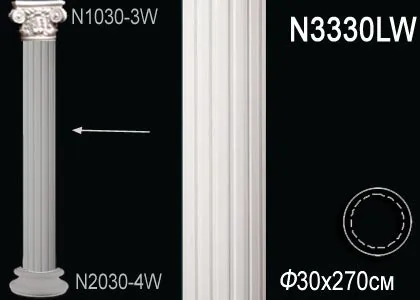 Ствол колонны N3330LW производителя Перфект. Колонны из полиуретана представляют собой изысканный и стильный элемент декорации для интерьера, обладая рядом характеристик и преимуществ, которые делают их популярным выбором для улучшения дизайна помещений. Ствол это средняя часть композиции и не является несущей конструкцией, для увеличения высоты колонны приобретается дополнительный ствол соединяя их путем монтажа.