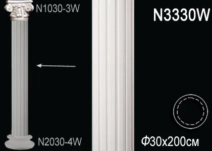 Ствол колонны N3330W производителя Перфект. Колонны из полиуретана представляют собой изысканный и стильный элемент декорации для интерьера, обладая рядом характеристик и преимуществ, которые делают их популярным выбором для улучшения дизайна помещений. Ствол это средняя часть композиции и не является несущей конструкцией, для увеличения высоты колонны приобретается дополнительный ствол соединяя их путем монтажа.