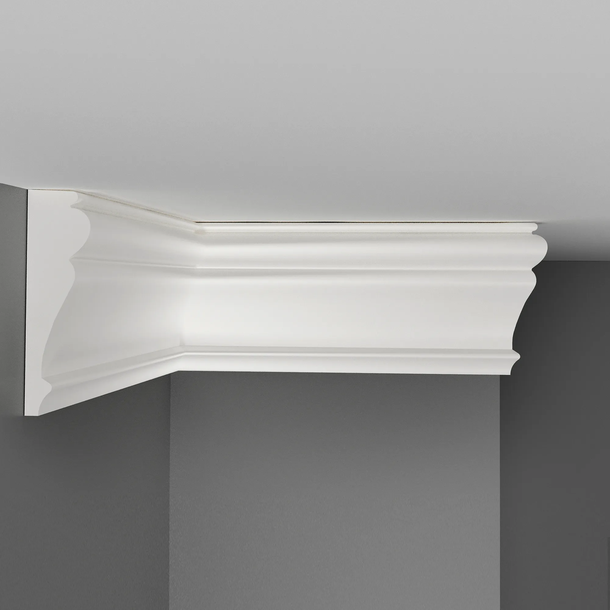 Молдинг D152 Decomaster из дюрополимера он же (экополимер, композит, фитополимер) ударопрочной, легкий в монтаже.Молдинг готов к покраске лакокрасочными материалами не содержащие растворитель. Дюрополимер не содержит токсичных продуктов и со временем не дает усадку. Рекомендуется использовать стыковочный клей для соединительных стыков. Молдинг можно использовать как потолочный карниз.