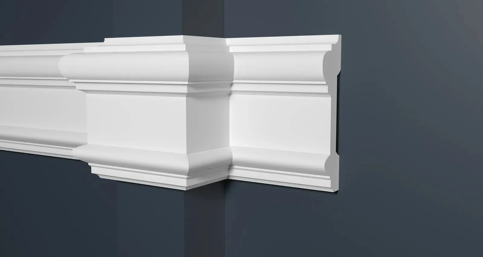 Молдинг DD601 из дюрополимера он же ( экополимер, композиит, фитополимер) ударопрочной, легкий в монтаже, рекомендуется прогрунтовать перед покраской для равномерного окрашивания красками не содержащие растворитель. Дюрополимер не содержит токсичных продуктов и со временем не дает усадку.