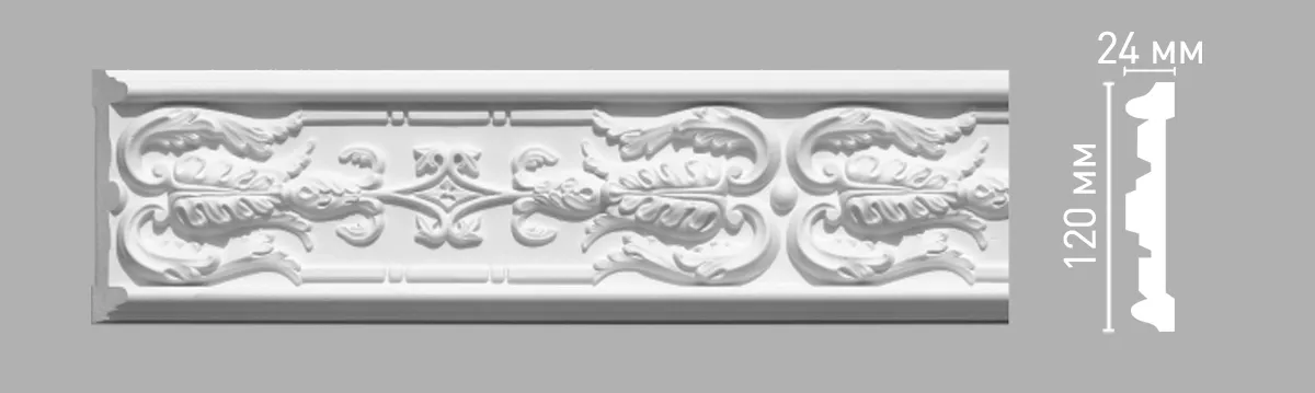 Молдинг из полиуретана 98090 Decomaster. Декоративные молдинги могут быть установлены на стенах, потолке, оконных и дверных откосах. Они также могут быть использованы для скрытия недостатков в отделке, таких как швы, трещины или неровности, для придания интерьеру завершенного вида, добавляя элегантности и стиля в помещение.