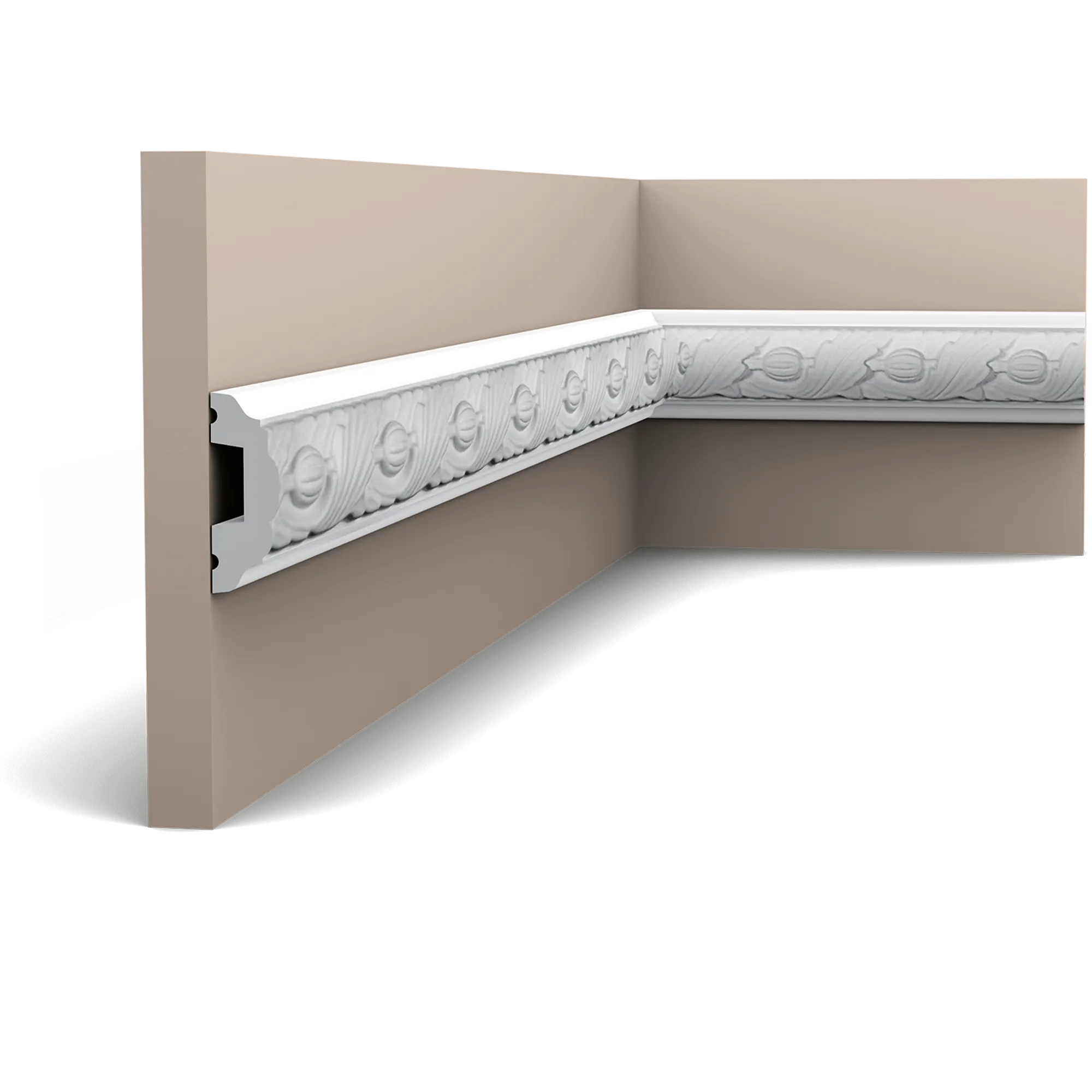 Настенный молдинг P1020 с листьями аканта и миндалем. Этот профиль может стать яркой деталью как в классическом, так и в современном интерьере.