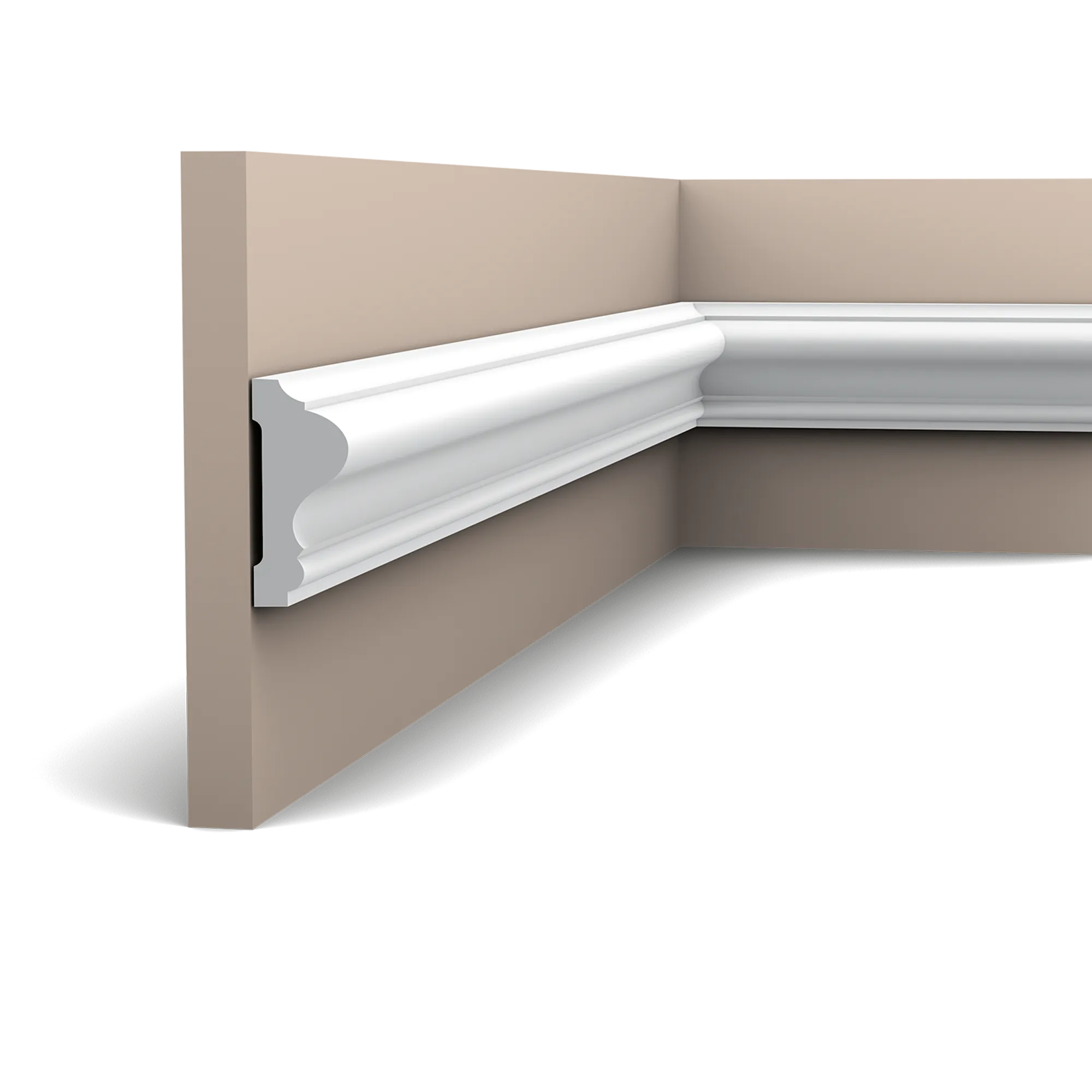 Молдинг украшен мягкими завитками, которые прекрасно впишутся в интерьер. Элегантный дизайн придаст утонченный вид любому помещению. Для создания углового решения рамок на стене идеально сочетается с P801C.