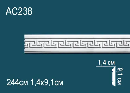 Молдинг AC 238 c орнаментом из полиуретана компании Перфект. Материал высокой прочности, гибкости, водонепроницаемого, стойкого к перепадам температур и воздействию света, что позволяет монтировать не только в сухих, но и влажных помещениях. С помощью молдингов можно оформить интерьер вашего помещения в любом стиле, разделять стены и потолки на зоны, создавая визуально условные панели. Часто полиуретановые молдинги используются как карнизы потолочные, и в отличие от них клеятся только на одну поверхность или к потолку, или к стене Для монтажа изделий рекомендуется использование монтажного и стыковочного клея во избежание расхождения швов. Перед покраской рекомендуем прогрунтовать изделия для лучшего окрашивания лакокрасочными материалами не содержащие растворителей.
