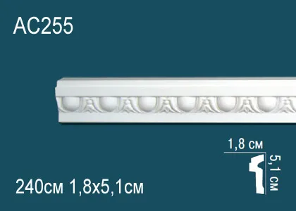 Молдинг AC 255 c орнаментом из полиуретана компании Перфект. Материал высокой прочности, гибкости, водонепроницаемого, стойкого к перепадам температур и воздействию света, что позволяет монтировать не только в сухих, но и влажных помещениях. С помощью молдингов можно оформить интерьер вашего помещения в любом стиле, разделять стены и потолки на зоны, создавая визуально условные панели. Часто полиуретановые молдинги используются как карнизы потолочные, и в отличие от них клеятся только на одну поверхность или к потолку, или к стене Для монтажа изделий рекомендуется использование монтажного и стыковочного клея во избежание расхождения швов. Перед покраской рекомендуем прогрунтовать изделия для лучшего окрашивания лакокрасочными материалами не содержащие растворителей. Имеет гибкий аналог.