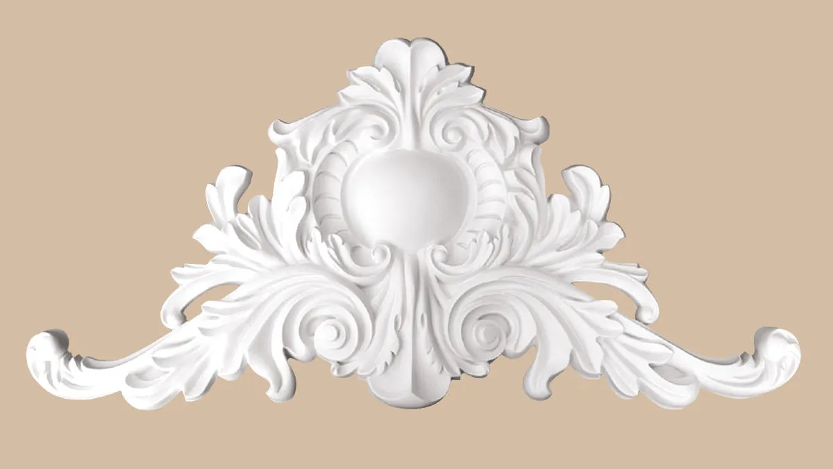Полиуретановые орнаменты легкие и прочные, что делает их удобными в установке, устойчивы к воздействию влаги, поэтому идеально подходят для использования в ванных комнатах и на кухнях. Изделья легко покрасить в любой цвет, что позволяет адаптировать их под любой интерьер.