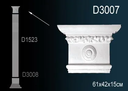 Капитель пилястры D3007 производителя Перфект из полиуретана. Ими декорируют не только гостиные или прихожие, но и рабочие кабинеты, вестибюли и холлы административных зданий, офисных помещений. Пилястры украшают каминные порталы, дверные проемы, используются в оформлении мебели. Благодаря своим изысканным линиям у капителей отсутствует грузность, но при этом они имеют роскошный представительский вид. Что касается практических функций капителей, то они служат как декоративная накладка между стыками стен и позволяют визуально увеличить высоту потолка. Пилястра состоит из трех частей: ствол, база и капитель которая является верхней частью композиции.