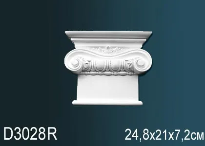 Капитель пилястры D3028R производителя Перфект из полиуретана. Ими декорируют не только гостиные или прихожие, но и рабочие кабинеты, вестибюли и холлы административных зданий, офисных помещений. Пилястры украшают каминные порталы, дверные проемы, используются в оформлении мебели. Благодаря своим изысканным линиям у капителей отсутствует грузность, но при этом они имеют роскошный представительский вид. Что касается практических функций капителей, то они служат как декоративная накладка между стыками стен и позволяют визуально увеличить высоту потолка. Пилястра состоит из трех частей: ствол, база и капитель которая является верхней частью композиции.