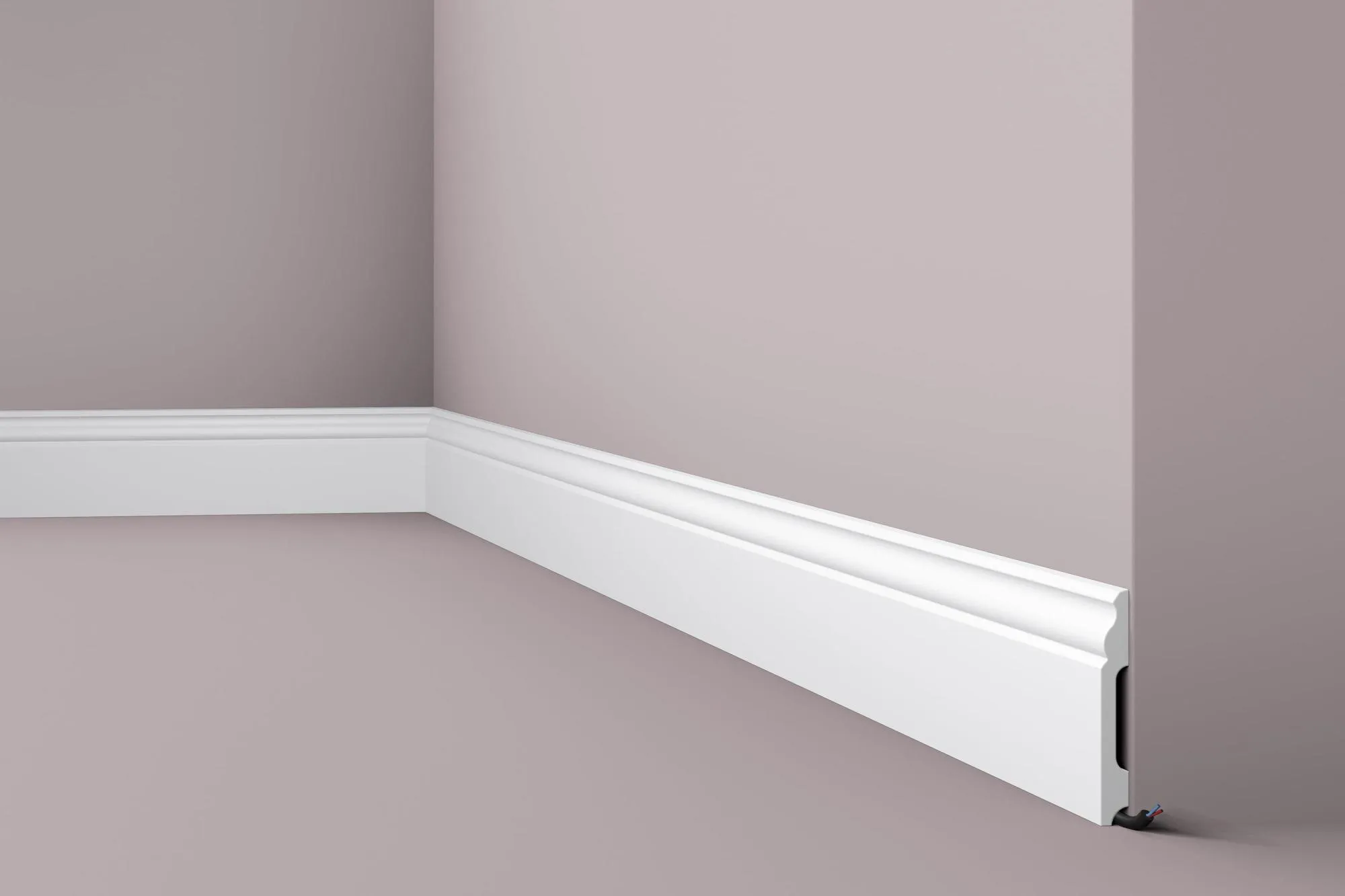 Напольный плинтус FB2 из дюрополимера, бельгийского производителя nmc. Плинтус про грунтован имеет идеальную поверхность для окрашивания красками не содержащие растворитель, легко монтируется.