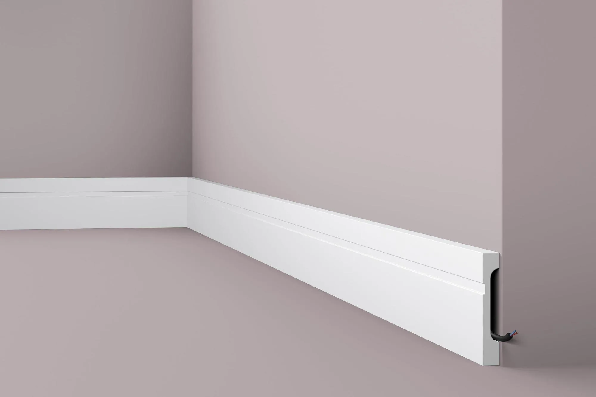 Напольный плинтус FD11 из дюрополимера, бельгийского производителя nmc. Плинтус про грунтован имеет идеальную поверхность для окрашивания красками не содержащие растворитель, легко монтируется. Плинтус FD11 можно в интерьере использовать как молдинг.