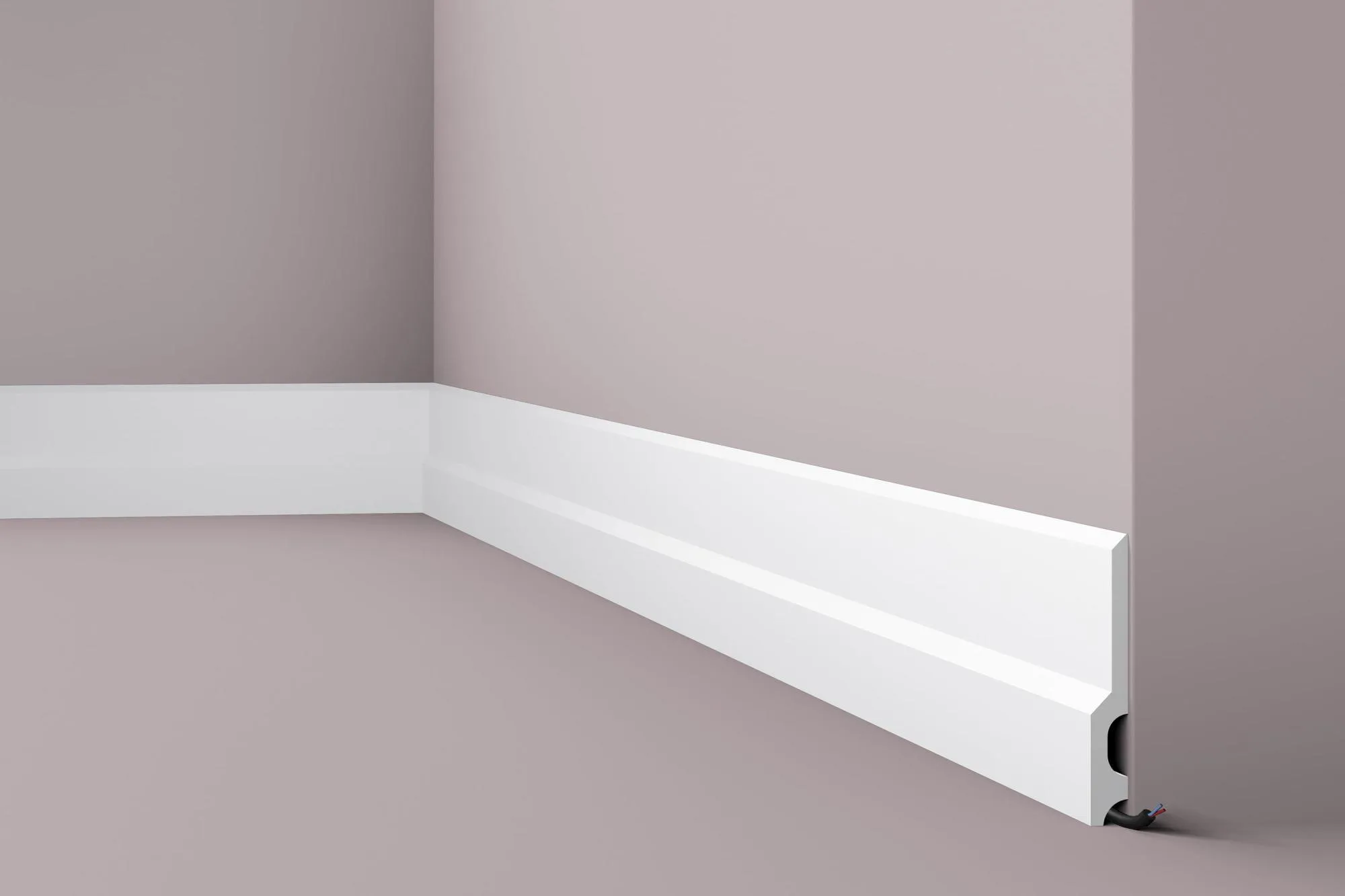 Напольный плинтус FD22 из дюрополимера, бельгийского производителя nmc. Плинтус про грунтован имеет идеальную поверхность для окрашивания красками не содержащие растворитель, легко монтируется.