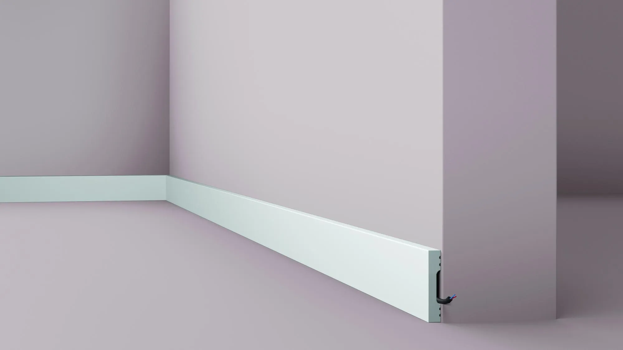 Напольный плинтус FD8 из дюрополимера, бельгийского производителя nmc. Плинтус про грунтован имеет идеальную поверхность для окрашивания красками не содержащие растворитель, легко монтируется. Плинтус FD8 также можно в интерьере использовать как молдинг.