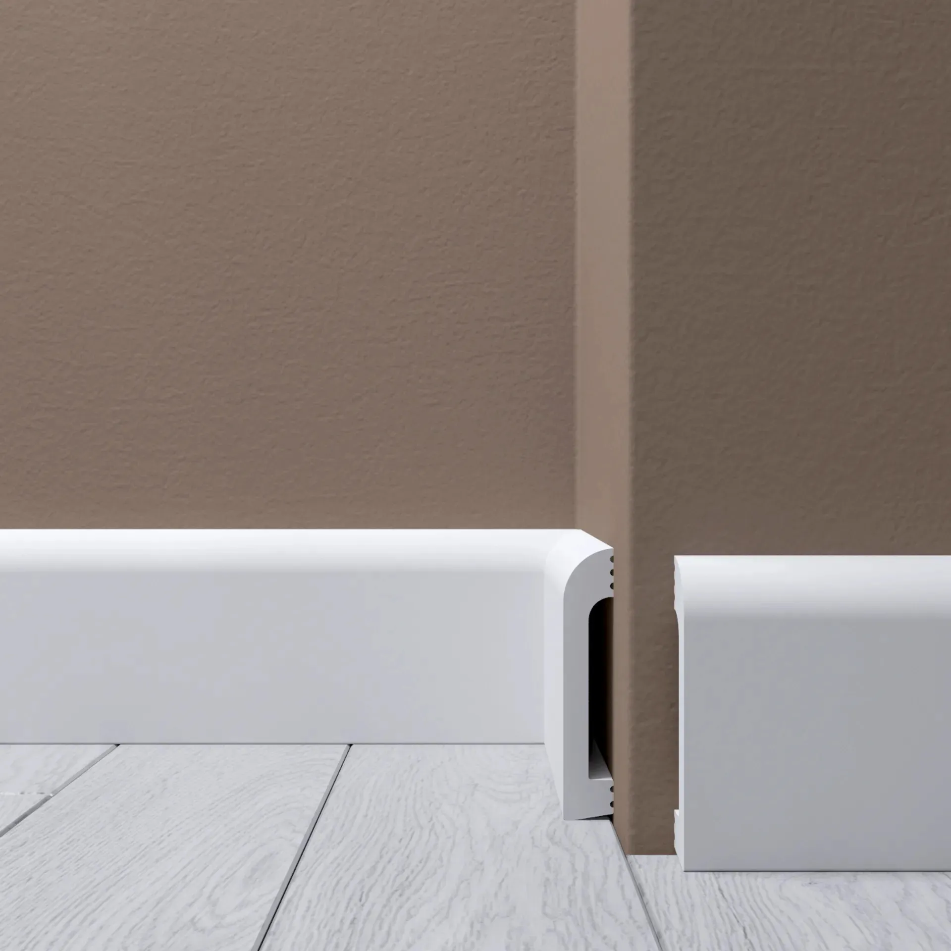 Напольный плинтус Н 6 80/15 из фитополимера он же (дюрополимер, композит, экополимер). Плинтус про грунтован , имеет идеальную поверхность для покраски красками не содержащие растворитель.Изделия из фитополимера ударопрочные, влагостойкие и со временем не дают усадку.