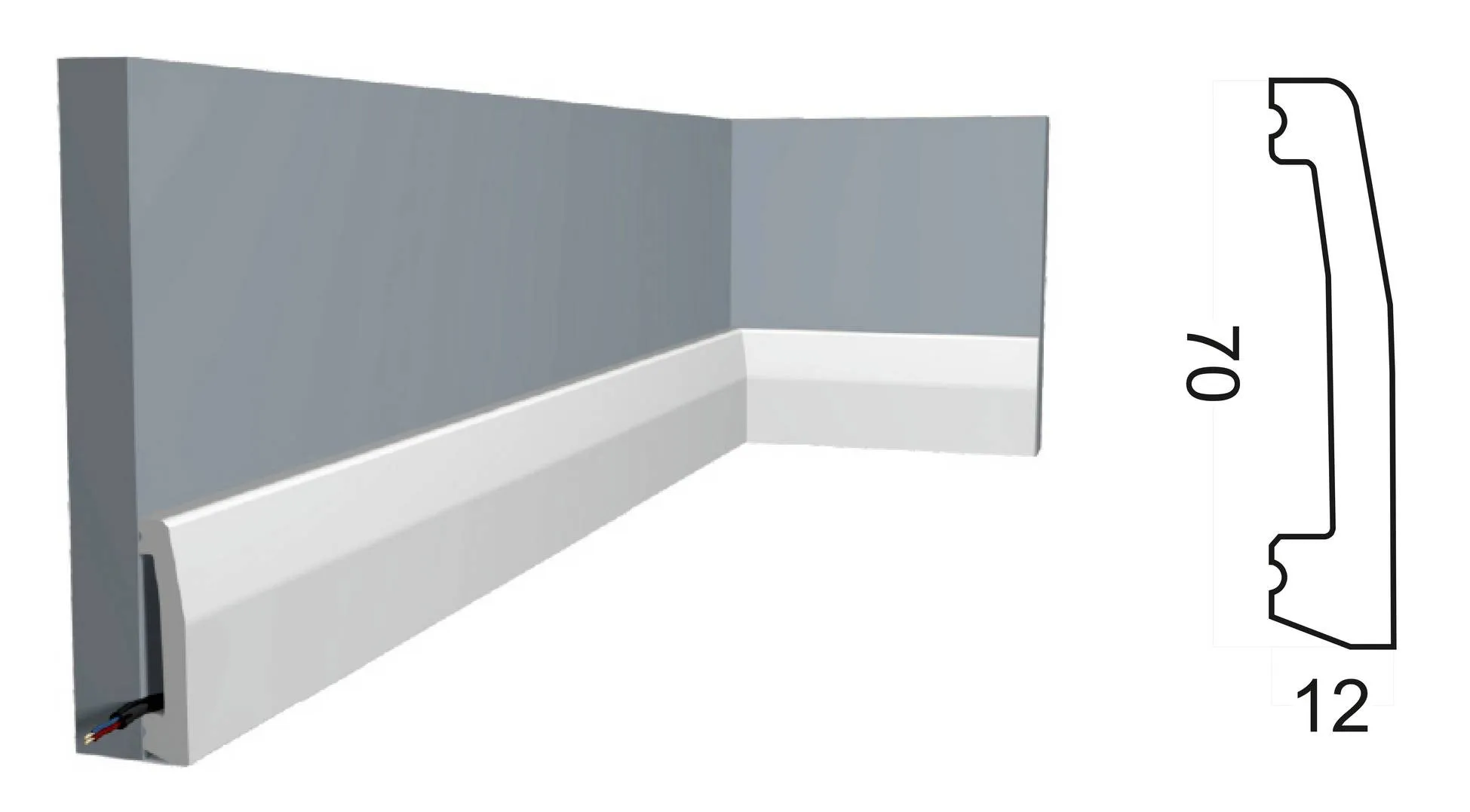 Напольный плинтус Kr008U PAOLO ARTE из дюрополимера материал высокой плотности, ударопрочный, водостойкий. Плинтуса можно использовать в жилых, офисных, торговых и других помещениях.