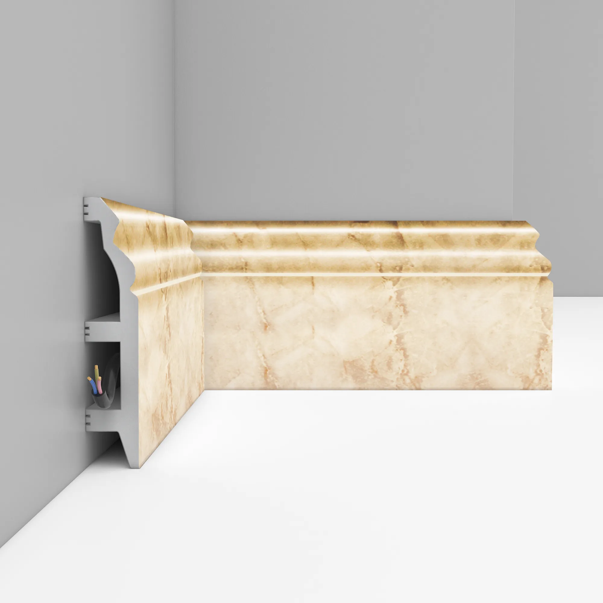 Окрашенный напольный плинтус D232-80 Decomaster из дюрополимера, длина 2,40 м, ударопрочный, влагостойкий. Дюрополимер не содержит токсичных продуктов и со временем не дает усадку.