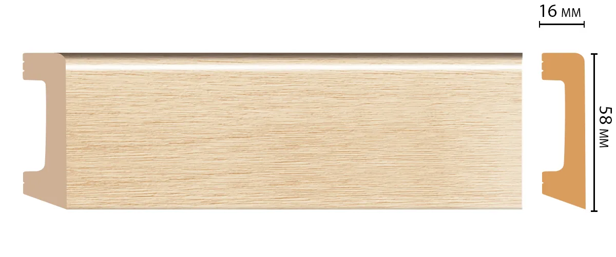 Окрашенный напольный плинтус D234-71 Decomaster из дюрополимера, длина 2,40 м, ударопрочный, влагостойкий. Дюрополимер не содержит токсичных продуктов и со временем не дает усадку.