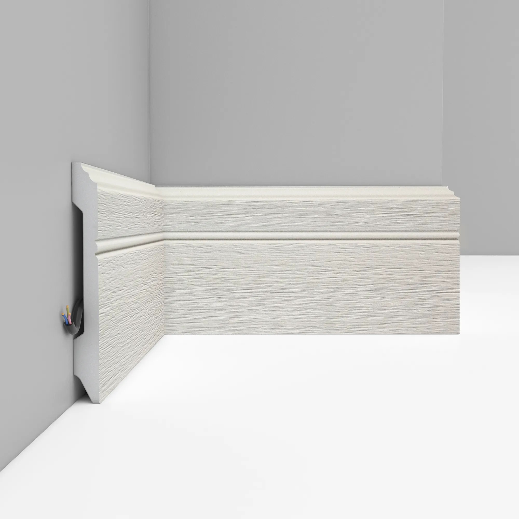 Окрашенный напольный плинтус D105-16 Decomaster из дюрополимера, длина 2,40 м, ударопрочный, влагостойкий. Дюрополимер не содержит токсичных продуктов и со временем не дает усадку.