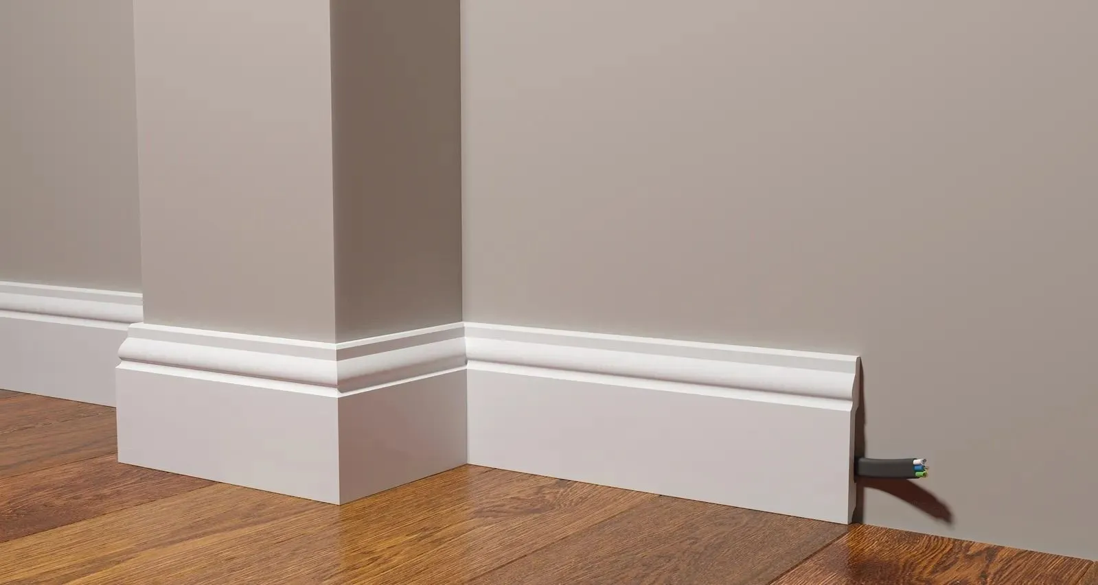 Напольный плинтус DD15 из дюрополимера он же ( экополимер, композиит, фитополимер) ударопрочный, влагостойкий и легкий в монтаже, рекомендуется про грунтовать перед покраской для равномерного окрашивания красками не содержащие растворитель. Дюрополимер не содержит токсичных продуктов и со временем не дает усадку.
