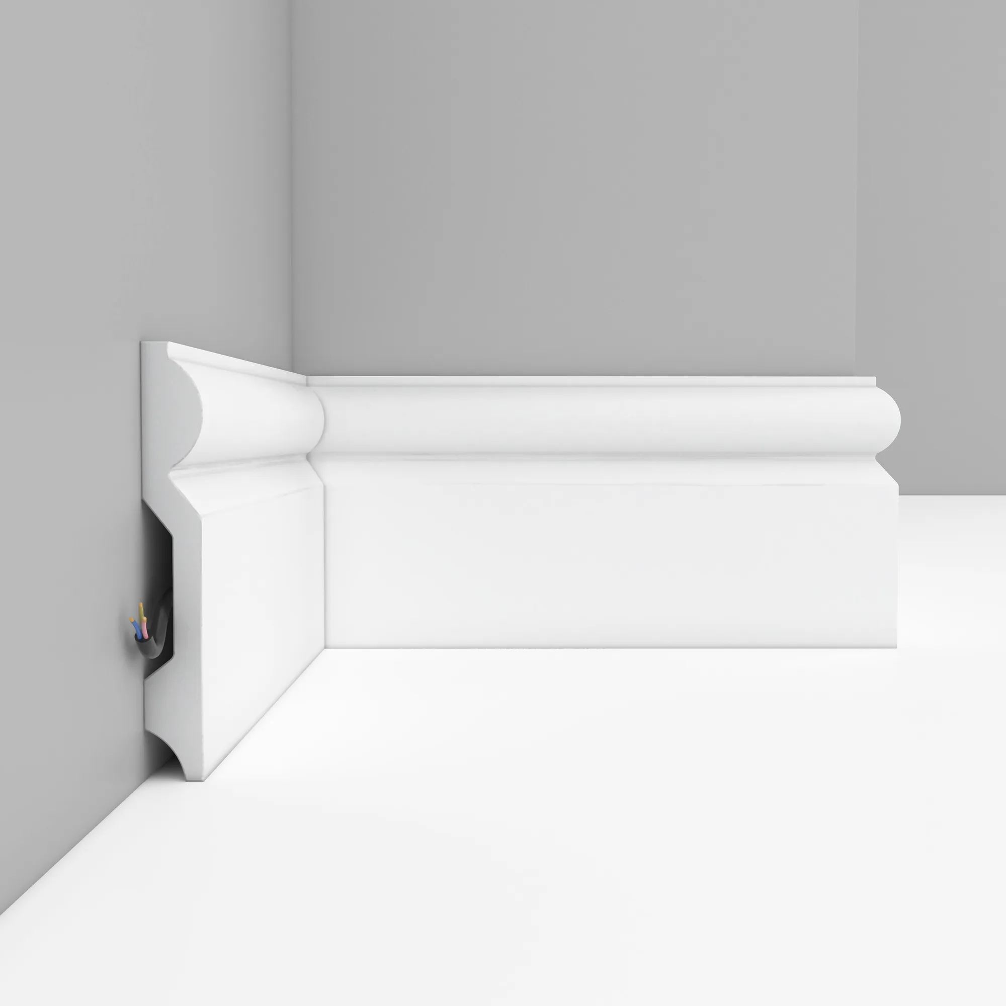 Напольный плинтус D137 Decomaster из дюрополимера он же (экополимер, композит, фитополимер) ударопрочной, легкий в монтаже. Плинтус готов к покраске лакокрасочными материалами не содержащие растворитель. Дюрополимер не содержит токсичных продуктов и со временем не дает усадку. Рекомендуется использовать стыковочный клей для соединительных стыков.