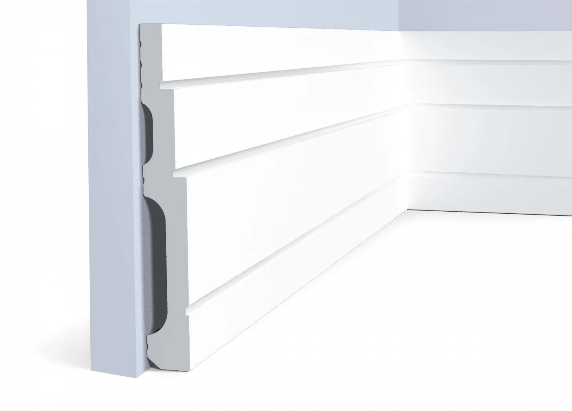 Напольный плинтус B180V2 производителя HIWOOD из фитополимера. Плинтуса ударопрочные, не требуют особого ухода, устойчивость к влаге позволяет их монтировать во влажные помещения,, легко моются, простые в монтаже. Резка профиля возможна как на специализированных торцевых пилах, так и при использовании стусло и обыкновенных пил по пластику или металлу. Плинтус перед покраской не требует нанесение грунтового слоя, специальные добавки используемые в процессе производства, образуют матовую поверхность. Высокий уровень экологичности. Рекомендуется использовать монтажный и стыковочный клей от производителя HIWOOD.