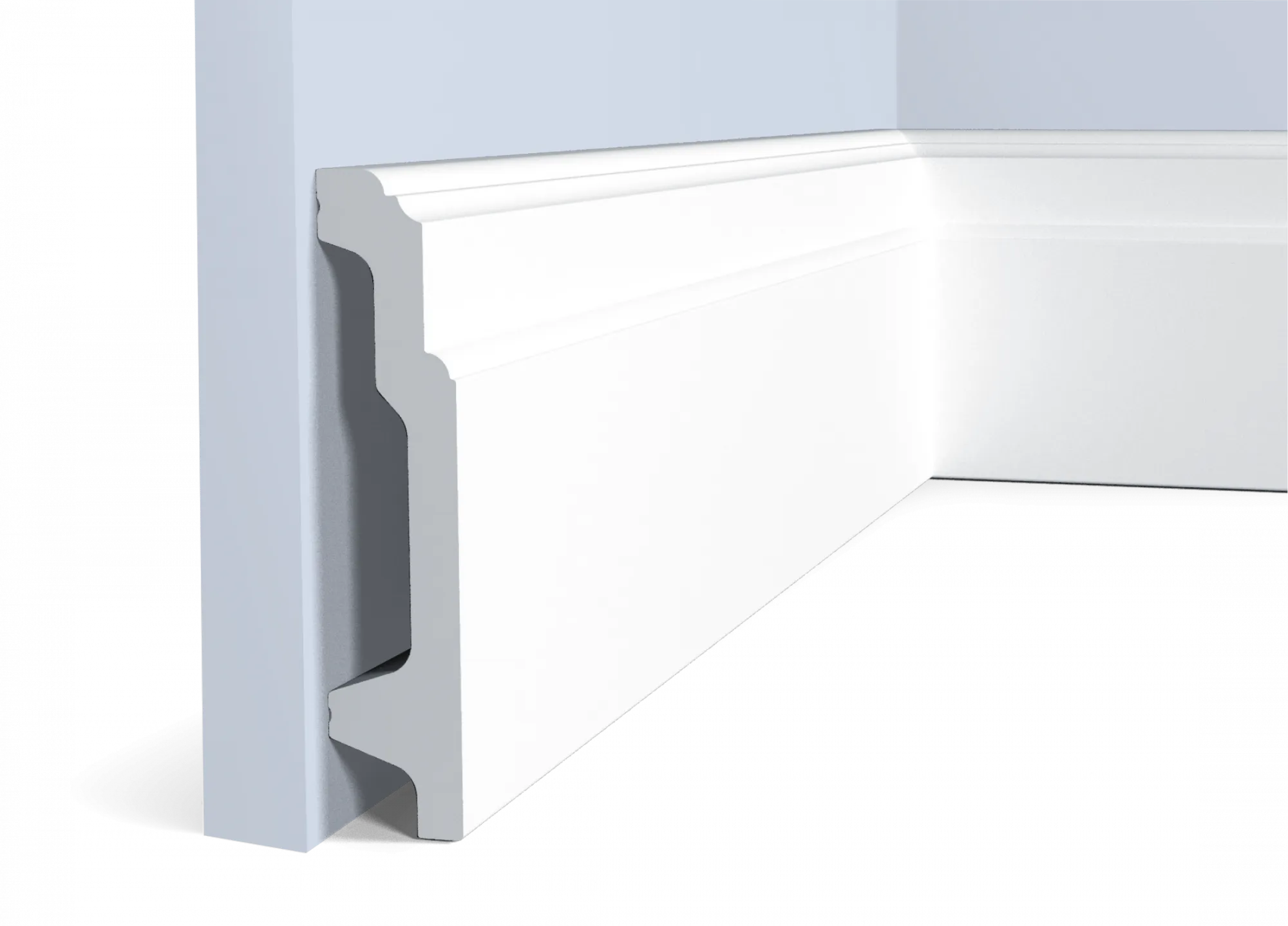 Напольный плинтус B100V1 производителя HIWOOD из фитополимера. Плинтуса ударопрочные, не требуют особого ухода, устойчивость к влаге позволяет их монтировать во влажные помещения,, легко моются, простые в монтаже. Резка профиля возможна как на специализированных торцевых пилах, так и при использовании стусло и обыкновенных пил по пластику или металлу. Плинтус перед покраской не требует нанесение грунтового слоя, специальные добавки используемые в процессе производства, образуют матовую поверхность. Высокий уровень экологичности. Рекомендуется использовать монтажный и стыковочный клей от производителя HIWOOD.