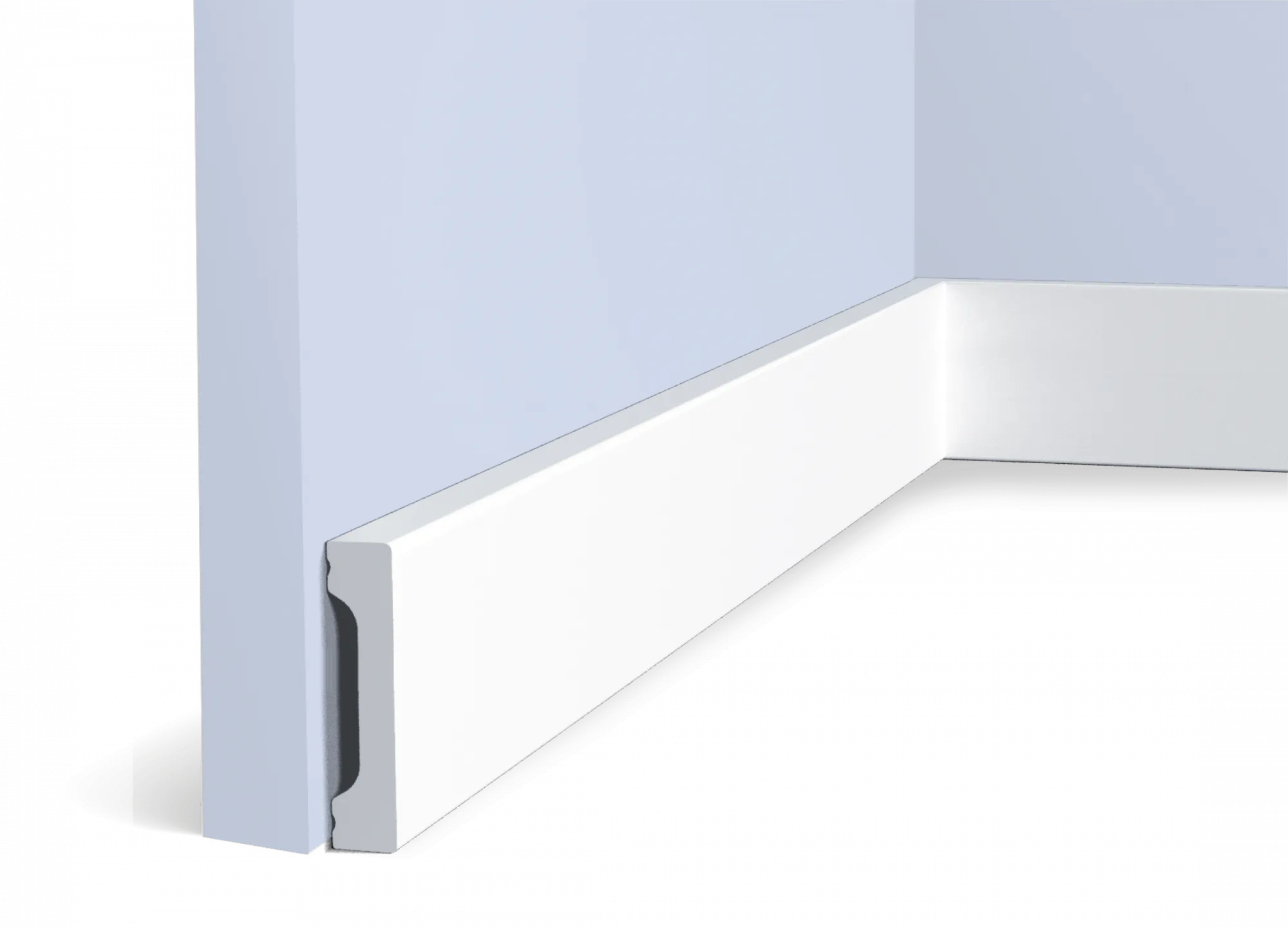 Напольный плинтус B55V1 производителя HIWOOD из фитополимера. Плинтуса ударопрочные, не требуют особого ухода, устойчивость к влаге позволяет их монтировать во влажные помещения,, легко моются, простые в монтаже. Резка профиля возможна как на специализированных торцевых пилах, так и при использовании стусло и обыкновенных пил по пластику или металлу. Плинтус перед покраской не требует нанесение грунтового слоя, специальные добавки используемые в процессе производства, образуют матовую поверхность. Высокий уровень экологичности. Рекомендуется использовать монтажный и стыковочный клей от производителя HIWOOD.